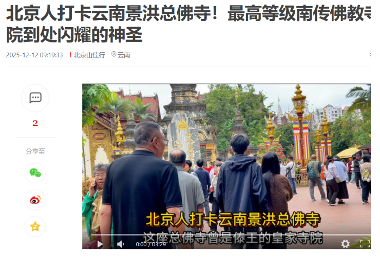 Last week, clips of Beijing residents “checking in” at Jinghong’s General Buddhist Temple in Yunnan, China’s highest-ranking Theravada Buddhist monastery, went viral, drawing attention to its sacred architecture and serene atmosphere.