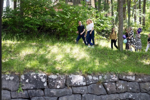 Delegates at Finland on the Move launch event in Little Finlandia, a unique wooden pavilion-like experience center, in Helsinki, June 2024