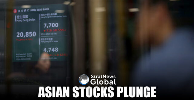 Major Asian stock indexes tumbled on Monday as White House officials remained firm on their aggressive tariff plans, while investors speculated that the growing recession risk might prompt U.S. interest rate cuts as soon as May.