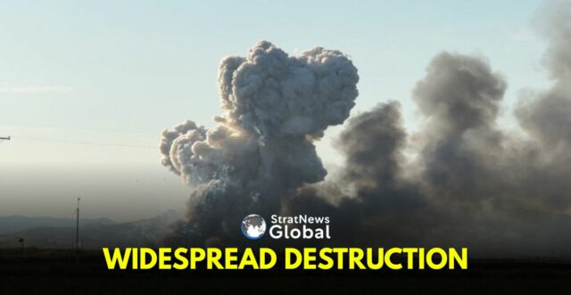 The blast, belching out a pall of thick black smoke, was followed by a flurry of dozens of smaller explosions flashing in the sky over the site, apparently ignited by the inventory of pyrotechnics stored at the location.